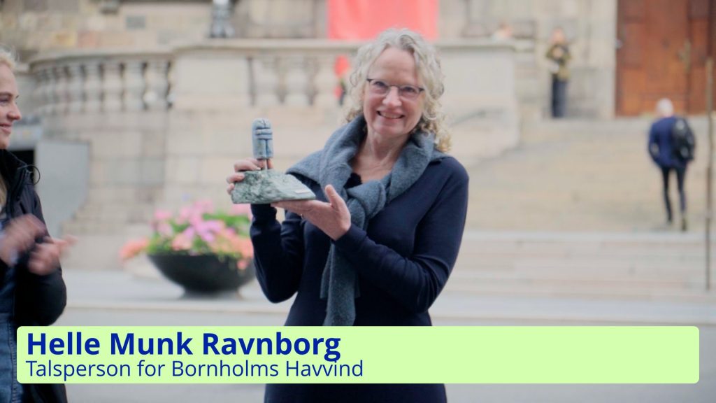 Helle Munk Ravnborg takker for Klimapåmindelsens ærespris. Hun er talsperson for den gruppe borgere, der står bag Bornholms Havvind.